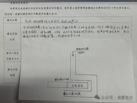 案例:在宁江小区“宁情说”核心征集亭的“金点子区”,一张贴着手绘示意图的建议纸,引起了民声专员的注意——图中清晰标注了小区门口与公交站点的冲突点,居民期盼迁移站点以保安全。依托“宁情说”网络,该建议被迅速上报。社区书记随即牵头,联动交通、公交等部门现场勘查,并通过“书记茶叙”汇聚人大代表与居民智慧,共商解决方案。最终,公交站点顺利北移30米。