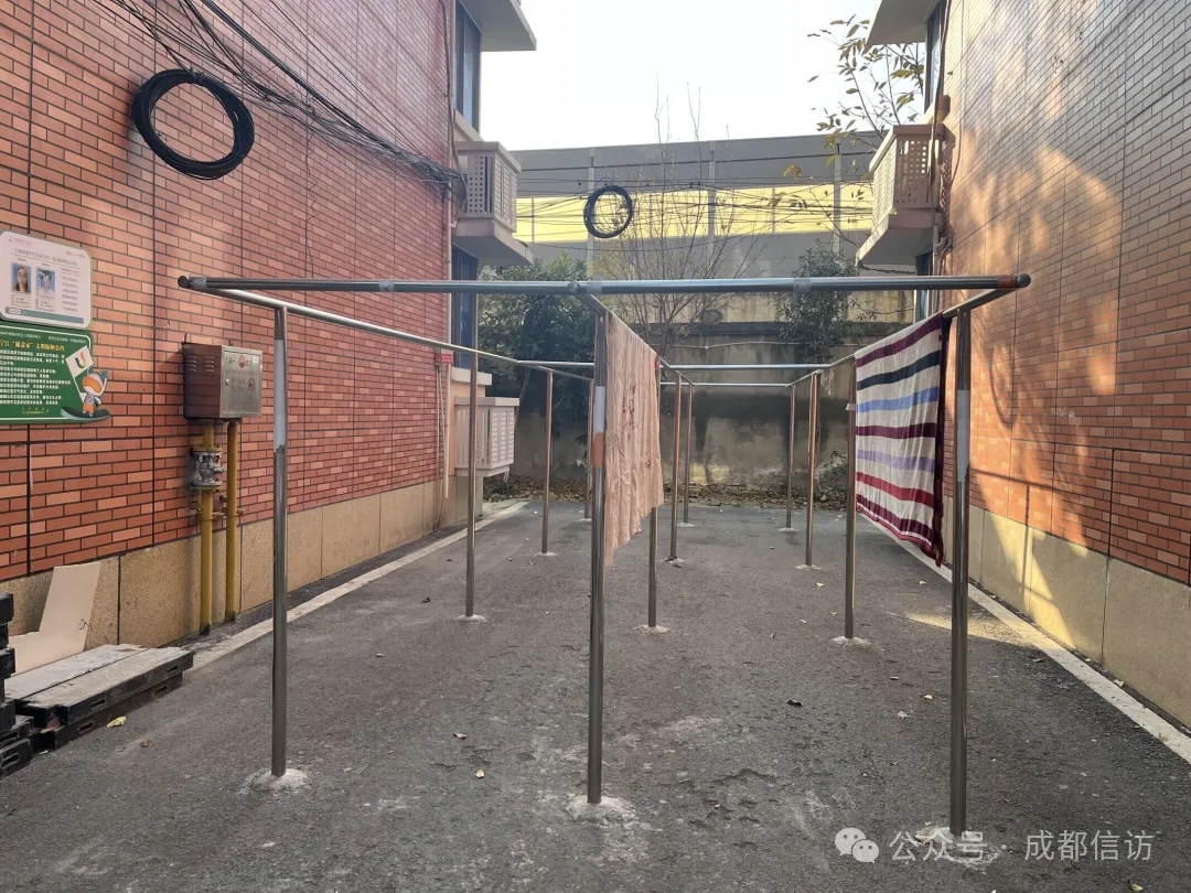 案例:宁江社区部分老旧小区曾长期被“晒被难”困扰——楼前树木间绳索交错、健身器材上“彩旗飘飘”,不仅影响环境美观,更存在安全隐患。社区党委敏锐地捕捉到这一民生痛点,没有停留在简单清理整治,而是将其升格为“重塑公共空间、提升家园品质”的治理课题。为此,社区主动链接专业力量,携手成都市龙泉驿区微光社会工作服务中心,成功申请市级治理项目资金,启动“铺盖家”公共晾晒区营造计划。